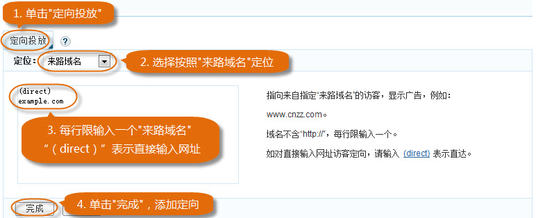 3、 添加按照“来路域名”的定向,如下图所示。